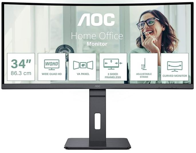 - Lieferumfang: AOC CU34P3CV 86,4 cm (34 Zoll) Monitor, Strom-, HDMI-, Displayport-Kabel, Treiber-CD, Garantiekarte